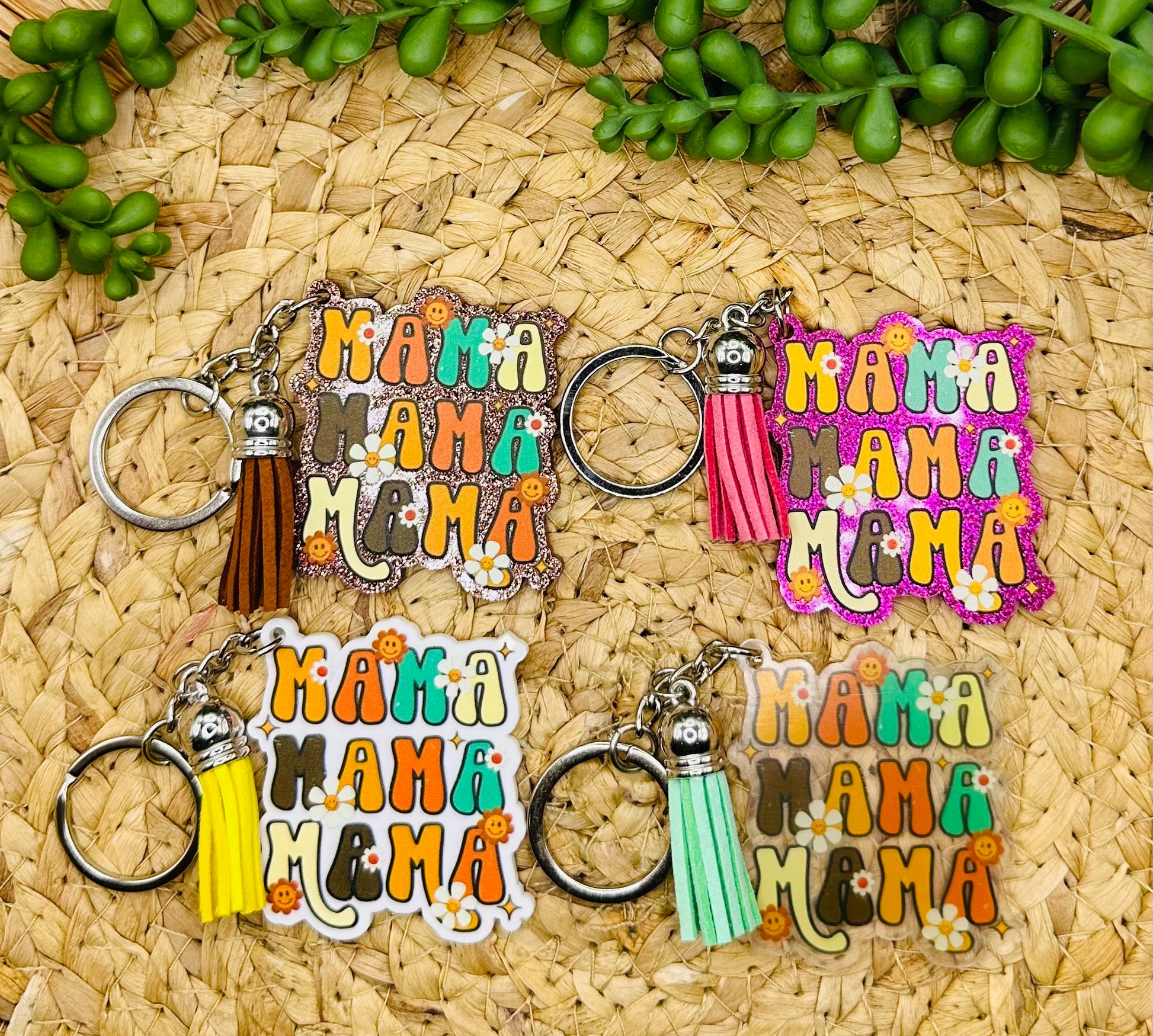 Porte-clés en acrylique « Rétro Mama Flower »