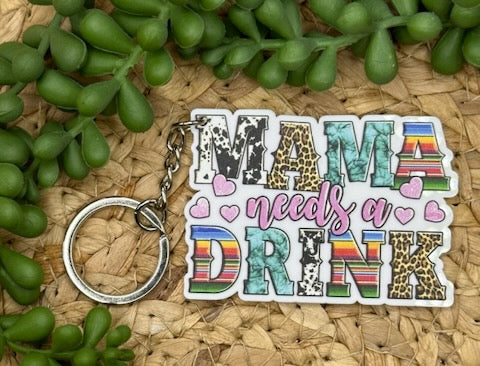 Acrylique « Maman a besoin d’un verre » Porte-clés #94