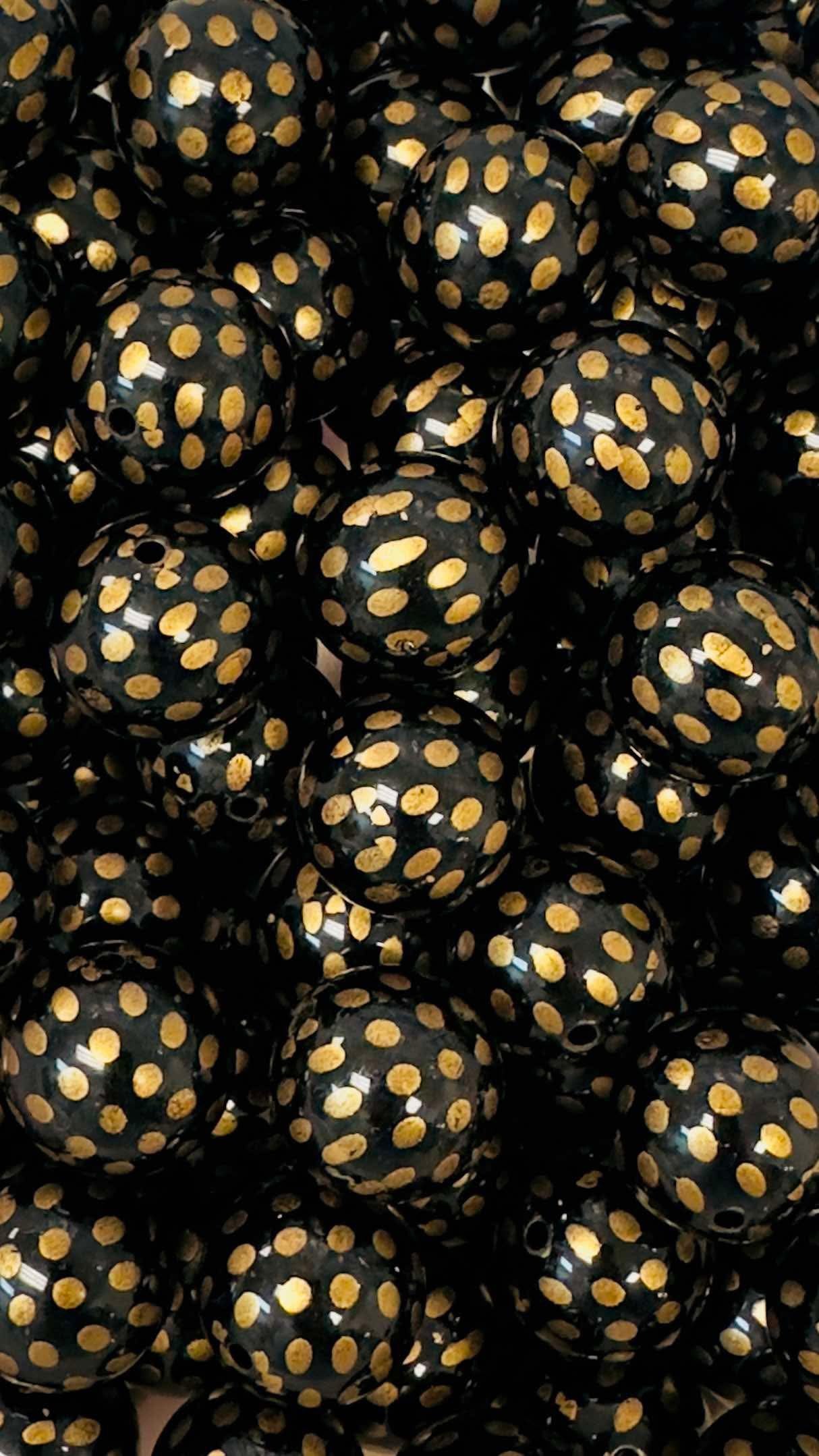 Black & Gold Mini Polka Dots 20mm Acrylic Bead