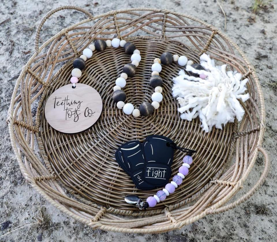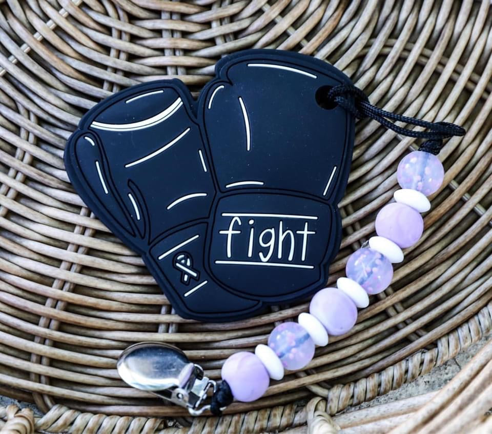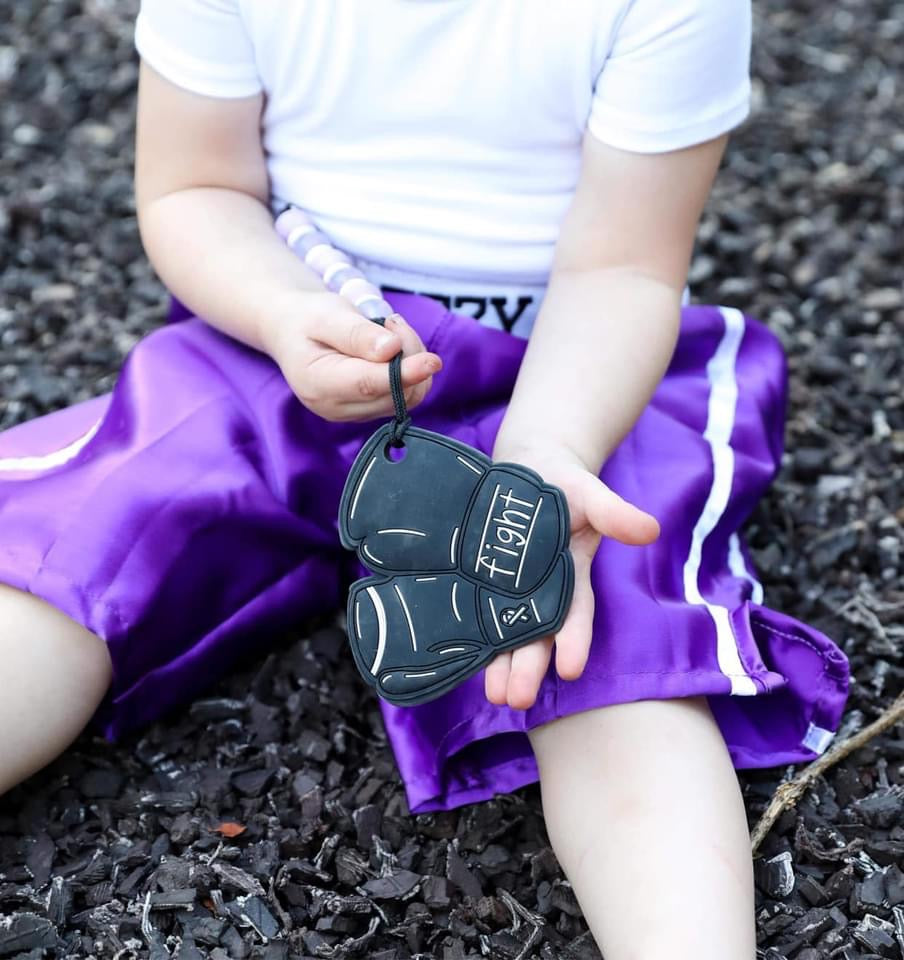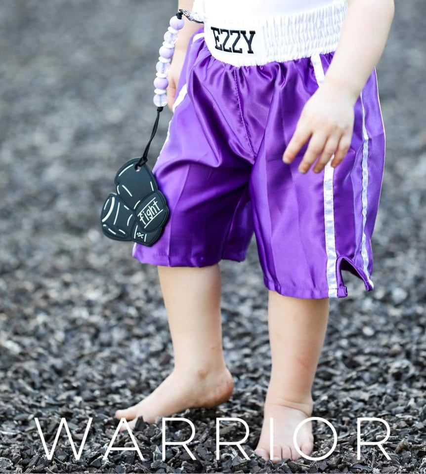 Il y a presque trois ans, j'ai accouché d'une petite fille parfaite à la fin de 33 semaines. Étant donné qu'il s'agissait de notre premier bébé, nous étions terrifiés par l'inconnu et cette peur ne nous a jamais quitté jusqu'à ce qu'elle obtienne son diplôme de l'USIN. En tant que parent, en regardant votre petit vivre des choses qu'aucun bébé ne devrait faire, vous vous retrouvez impuissant, effrayé et avec de nombreuses réponses. Des moniteurs auditifs et des infirmières qui entrent et sortent, regardent les parents tomber par terre à cause de nouvelles dévastatrices, puis regardent mon bébé en pensant « et si… ». Les codes auditifs et la perte nous entourent. Cela a accentué la dépression en pensant… « Pourquoi mon corps ne pouvait-il pas faire ce pour quoi il est fait ? » L’USIN était à l’origine d’un métier avec lequel je devais jouer pour ne plus penser à tous les « et si ». et plus tard, après l'obtention de son diplôme, c'est là que Teething Tots Co. est devenu une chose. Notre séjour à l'USIN n'est même pas comparable à celui de certains, mais quelle que soit la réalité, cela ressemble toujours à une vie. Trois ans plus tard, nous pouvons voir notre Ezzy s'épanouir dans toutes les choses qu'ils nous ont dit au départ qu'elle ne ferait jamais. Nous sommes en mesure de rester en contact avec certains membres de l'incroyable équipe médicale qui ont donné de l'amour à notre fille à chaque seconde de la journée, ainsi qu'avec certains bébés avec lesquels elle s'efforçait juste à côté. Je vous offre notre deuxième anneau de dentition exclusif, Warrior. C'est pour chaque personne qui se bat pour une cause quelconque. Les premiers gants de boxe (connus) sur le marché sont ici. Entièrement conçu par votre serviteur, avec un petit détail sensoriel « E » au dos pour notre Ezzy. Si vous me connaissez, vous connaissez mon amour et mon appréciation pour les infirmières et les médecins, en particulier de l'USIN. Si vous jouez un rôle dans un combat contre une personne, nous voulons vous dire MERCI ! Sarah Loy — Dentition Tots Co.