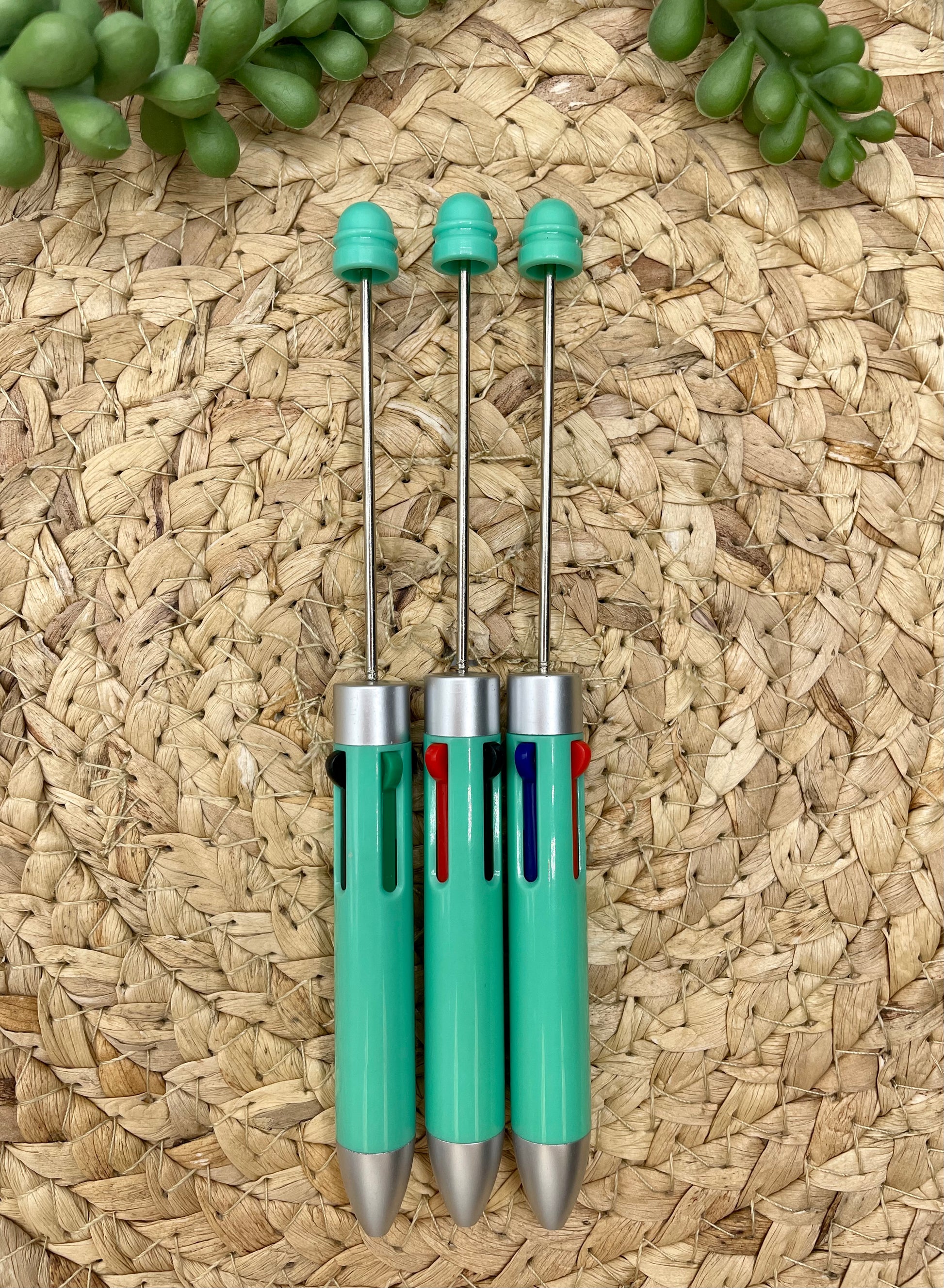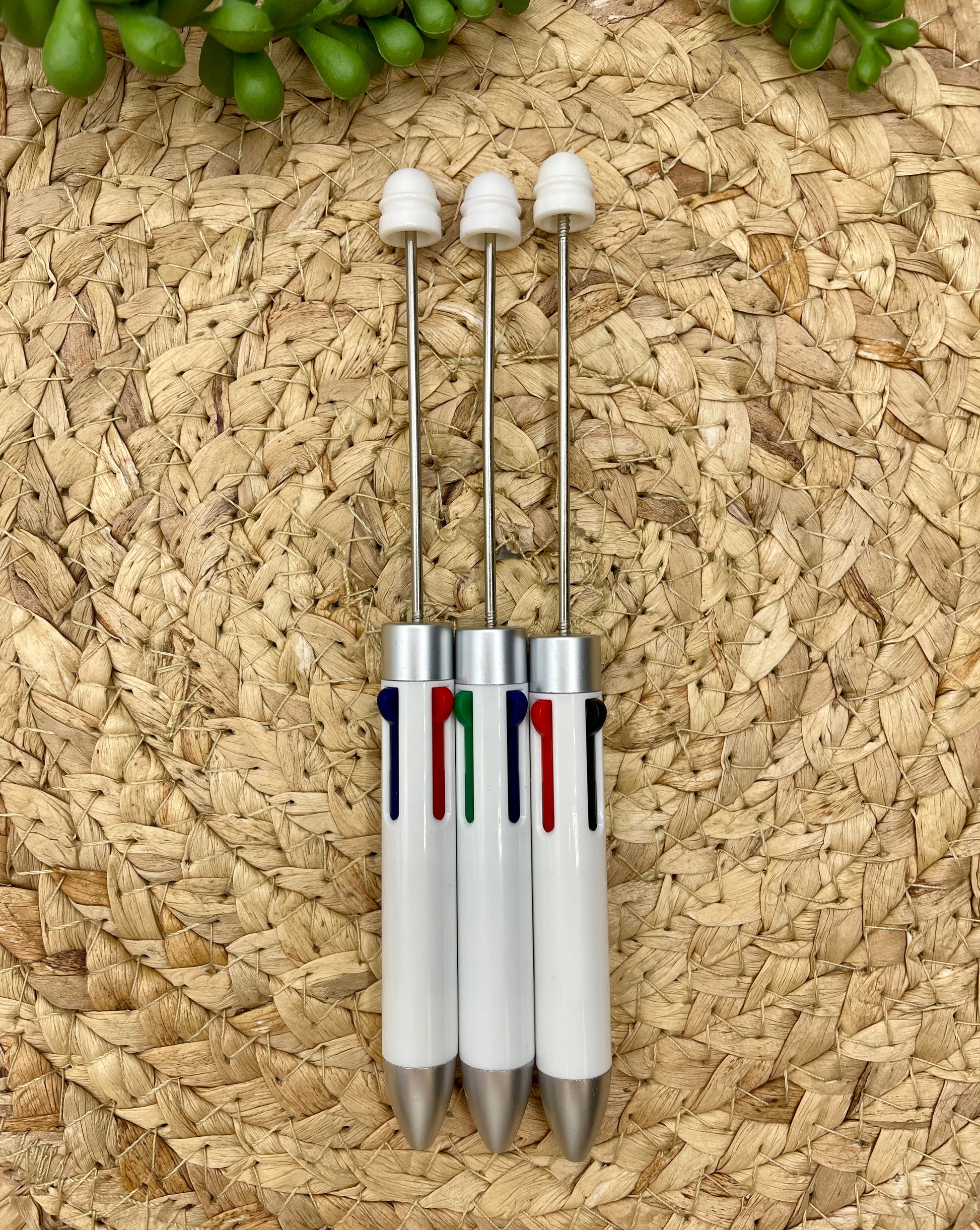 Stylos à bille multicolores à encre noire, rouge, bleue, verte avec possibilité de personnalisation avec des perles en silicone ! Les recharges d'encre standard fonctionnent pour ces stylos.
