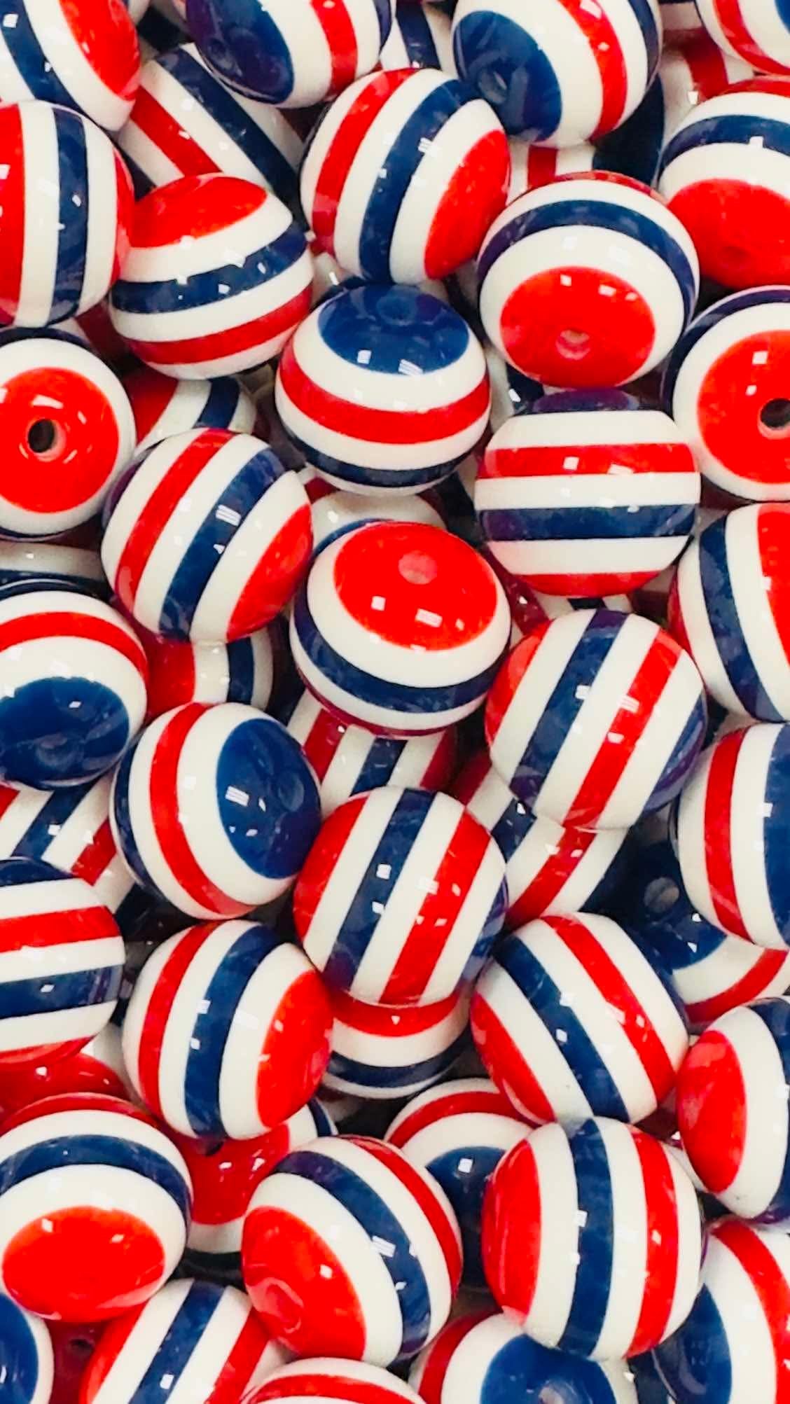 Red/White/Blue Stripes 20mm Acrylic Bead