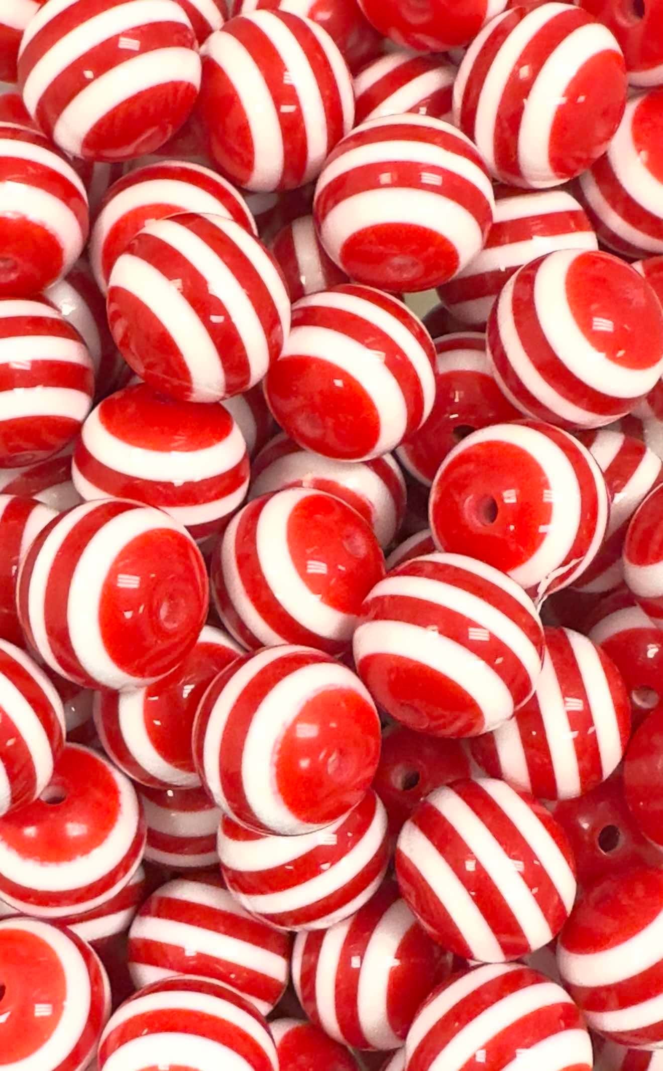 Red & White Stripes 20mm Acrylic Bead