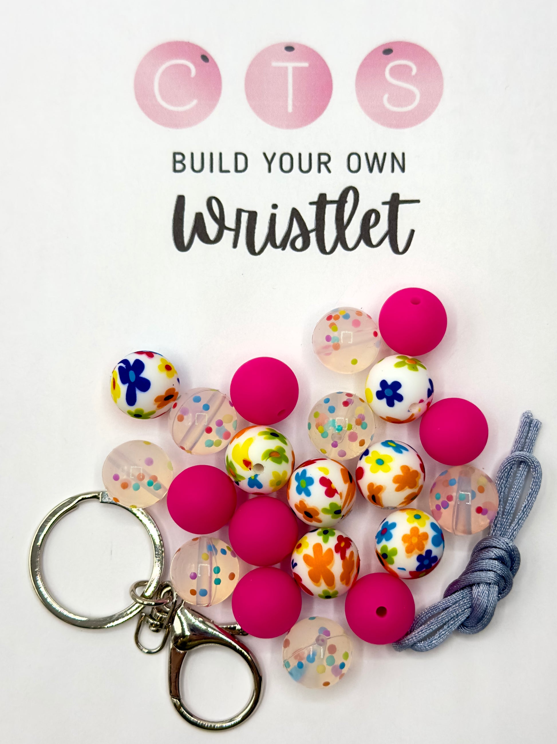 Ce kit comprend tous les éléments montrés sur la photo, 7 fuchsia, 7 marguerites rétro et 7 confettis