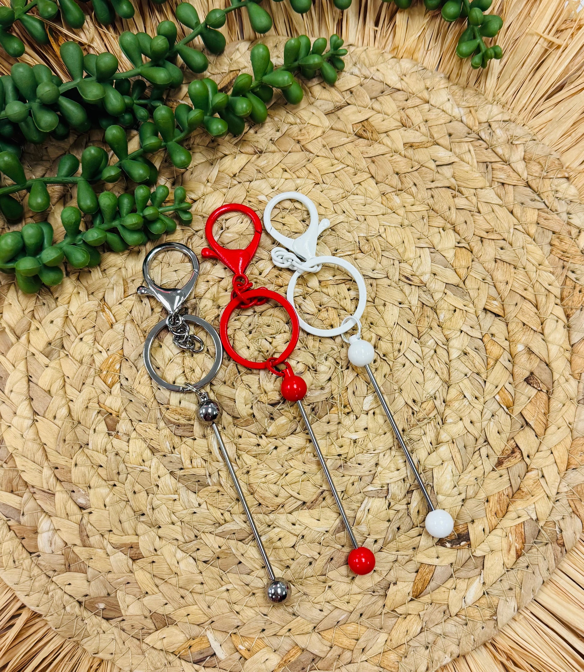Ces barres facilitent grandement la confection d'un accessoire pour un porte-clés. Dévissez la boule inférieure, ajoutez des perles et revissez ensemble. Ajoutez vos perles imprimées préférées et votre focale pour un look parfait.