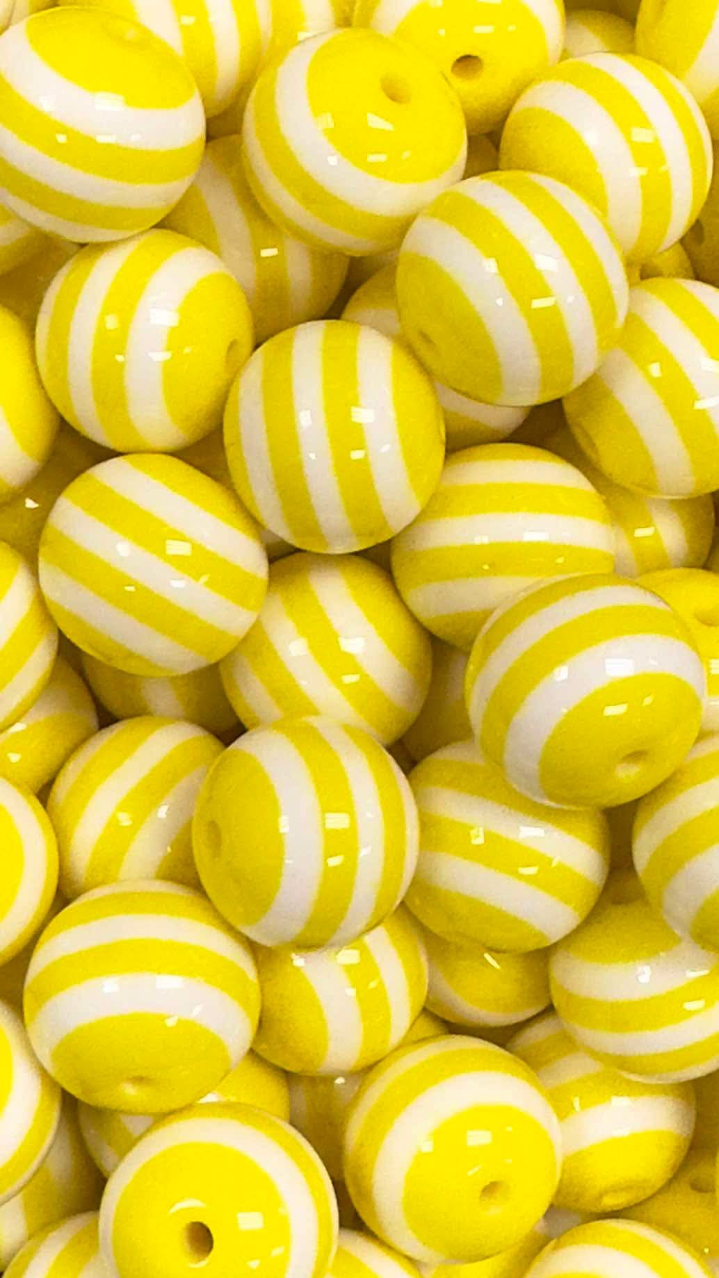 Yellow & White Stripes 20mm Acrylic Bead