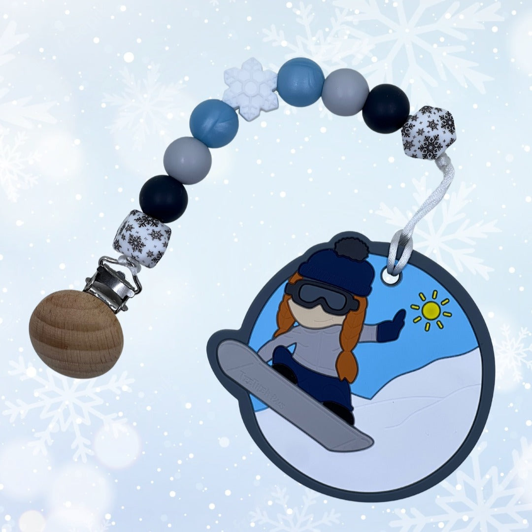 This Teether means a ton to me as my husband and I first met in Whistler, BC on a snowboarding trip. We are a very active family in the winter and hope you find as much join in my design as I have.