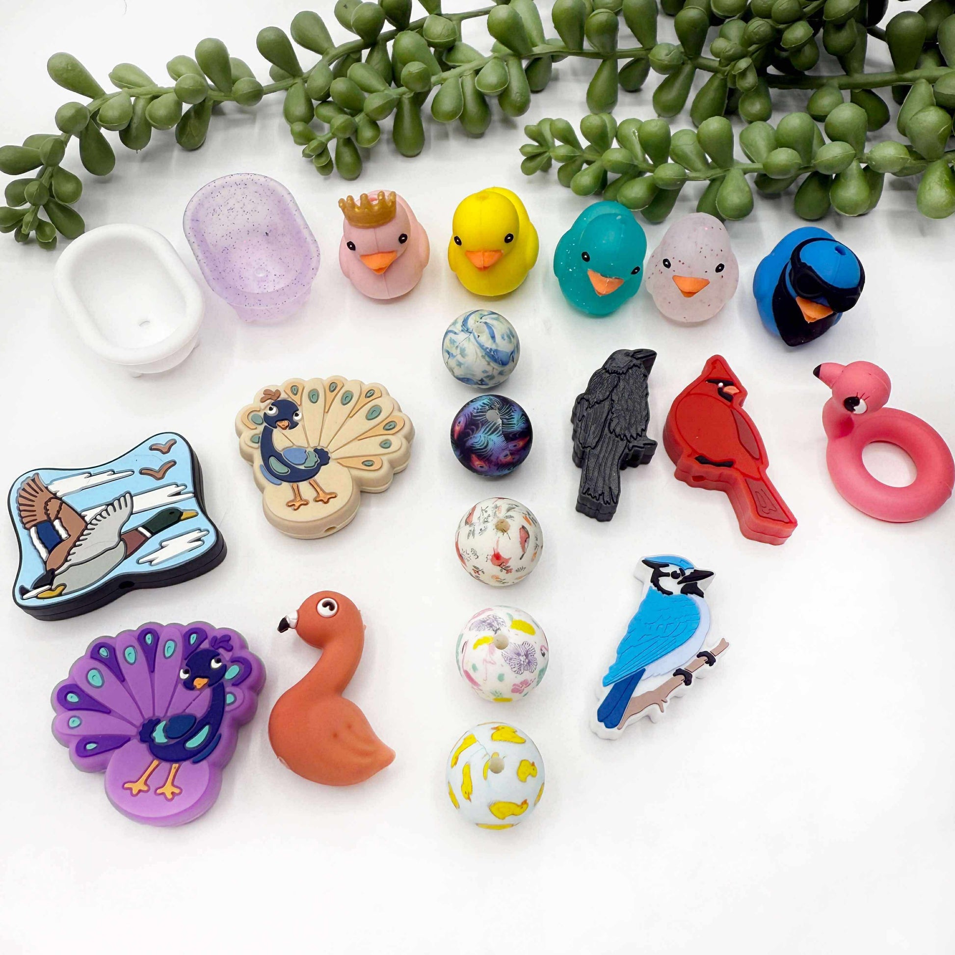 25 total Printed Beads: Cardinal, Blue Jay, Peacock, Flamingo, Ducking Love You-Yellow