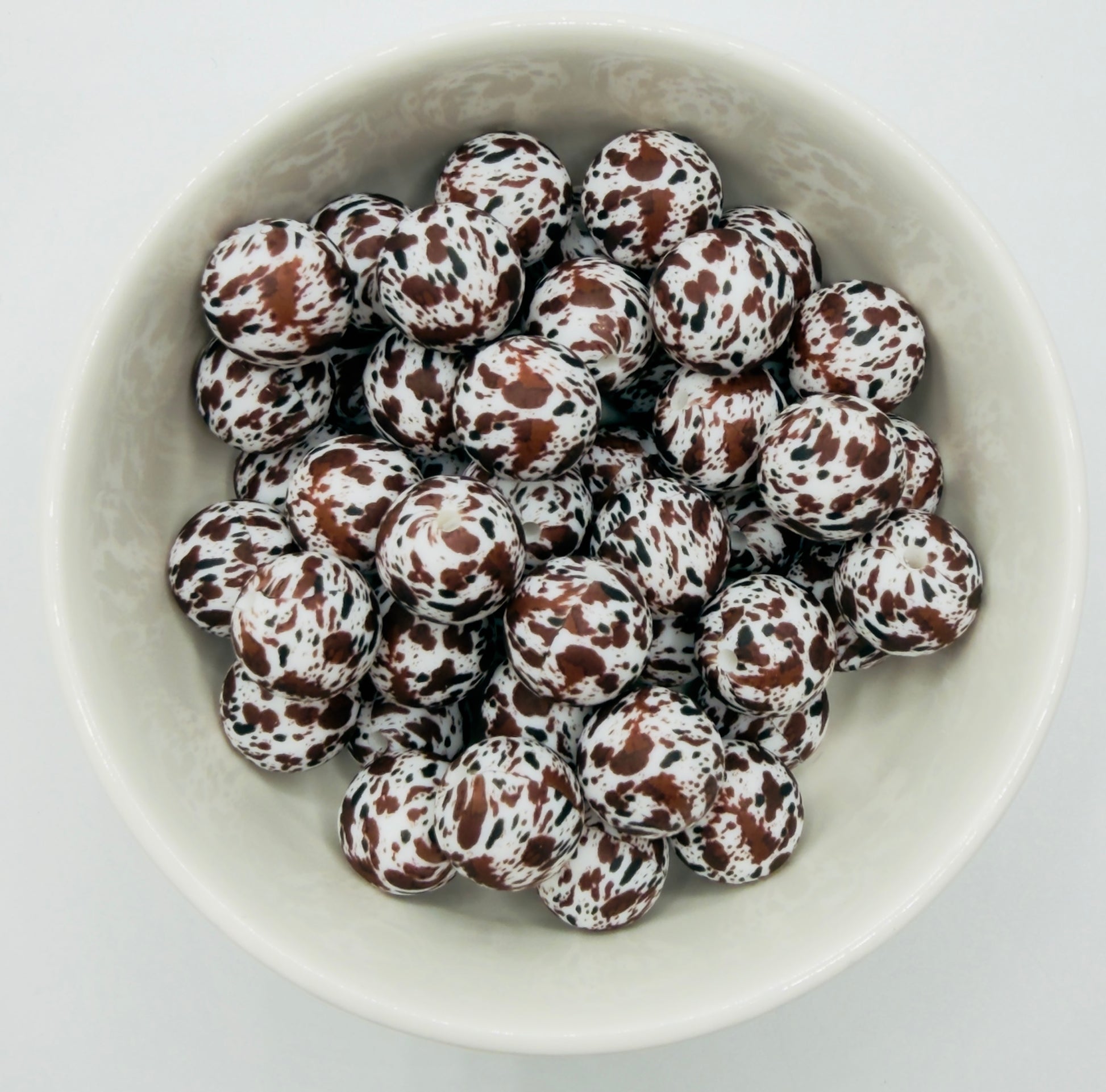 50 15mm beads per bag, 50 of ONE printed color - no mixing and matching