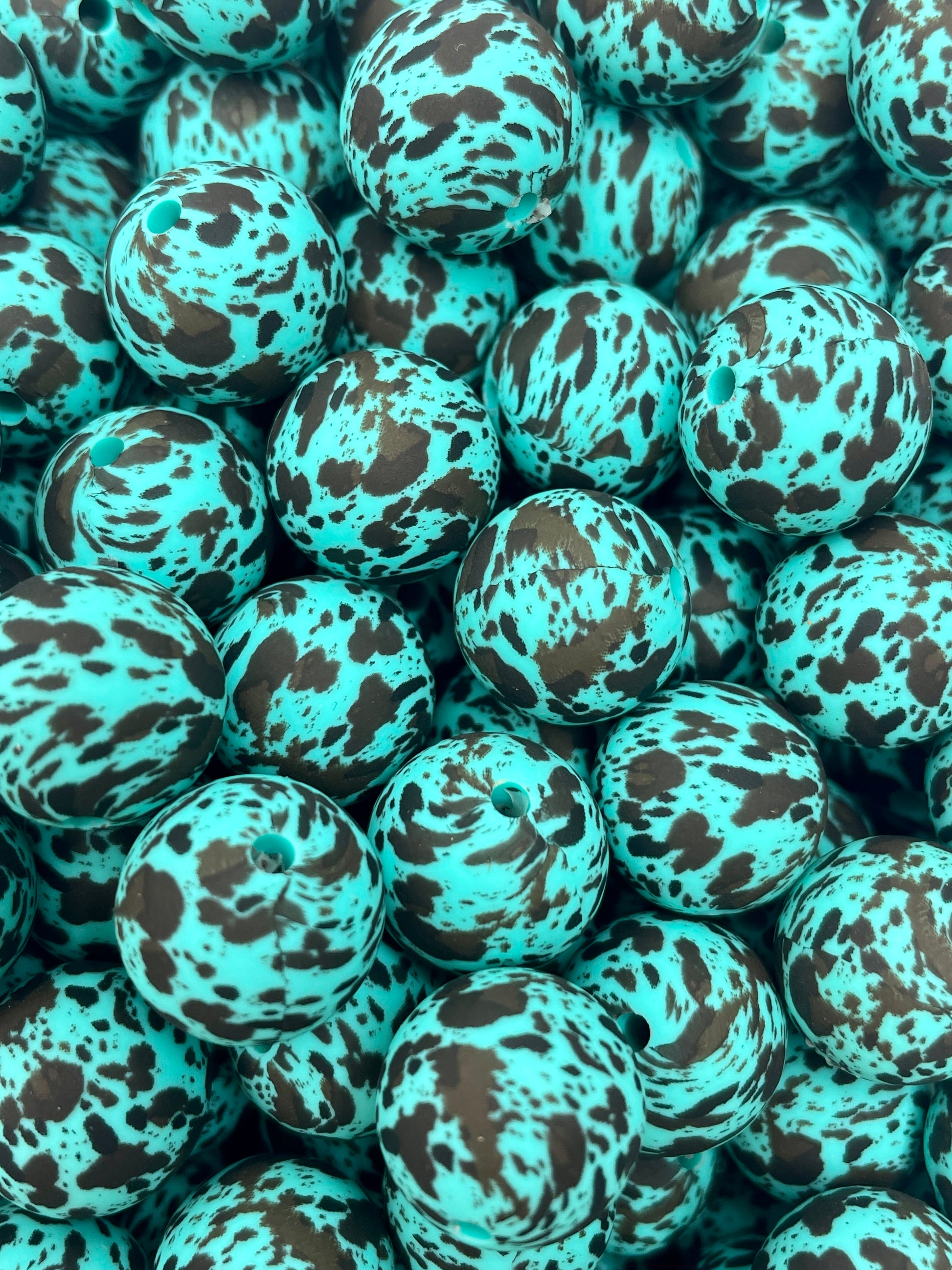 CTS Creation: Turquoise Brown Cow Printed 15mm Bead