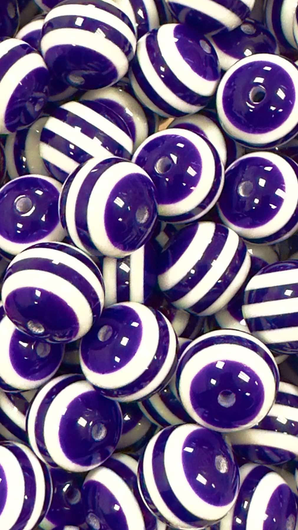 Deep Purple & White Stripes 20mm Acrylic Bead