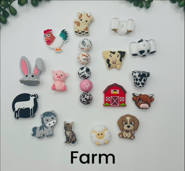 25 total Printed Beads: Brown Cow, Cow, Oink, Farm, Cock-a-doodle-doo