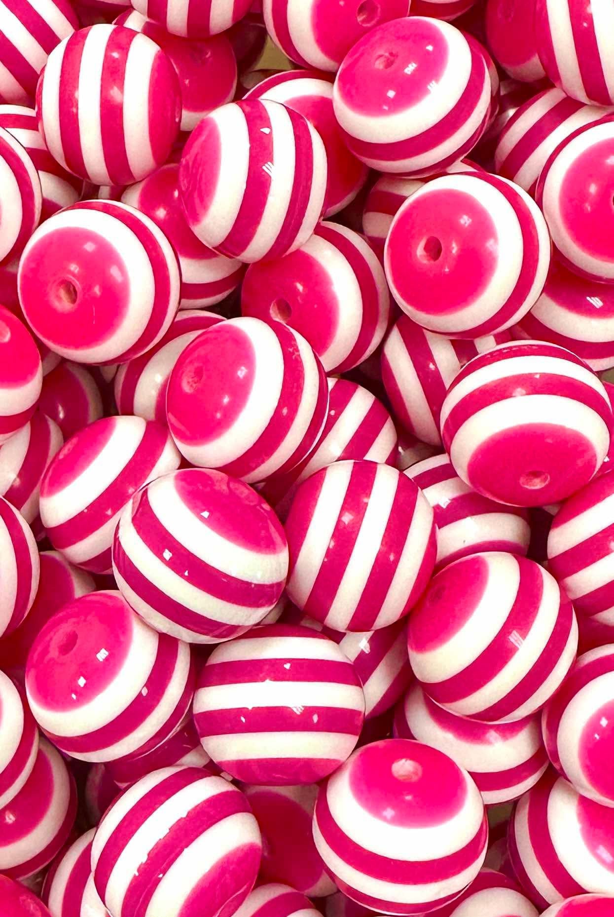 Fuchsia & White Stripes 20mm Acrylic Bead