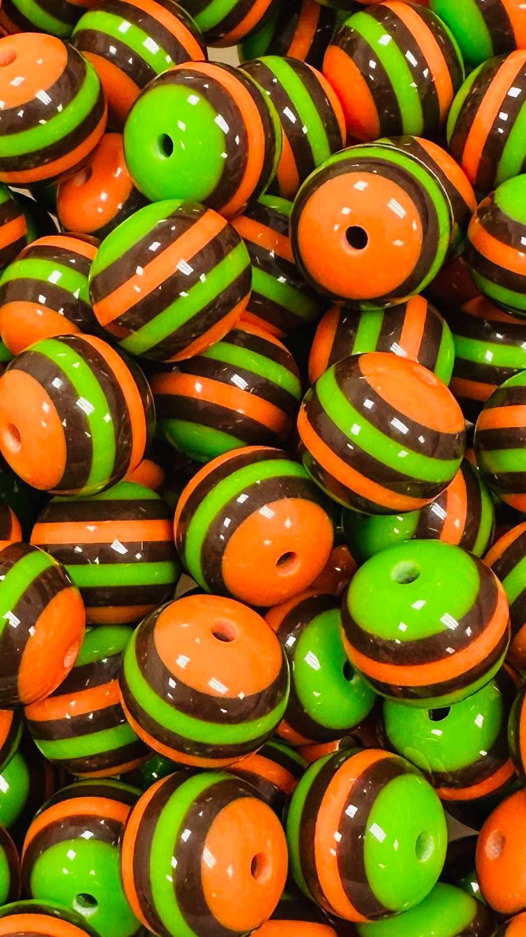 Green/Brown/Orange Stripes 20mm Acrylic Bead