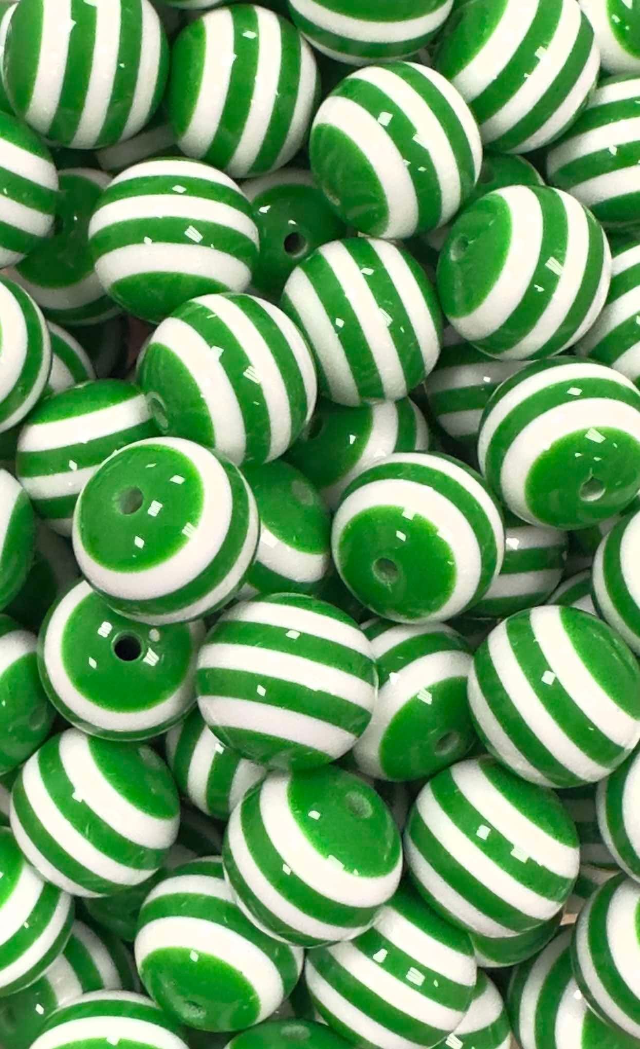 Green & White Stripes 20mm Acrylic Bead