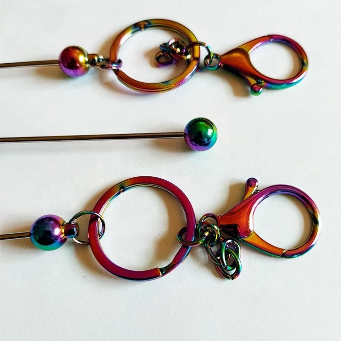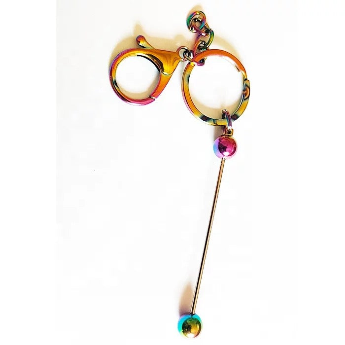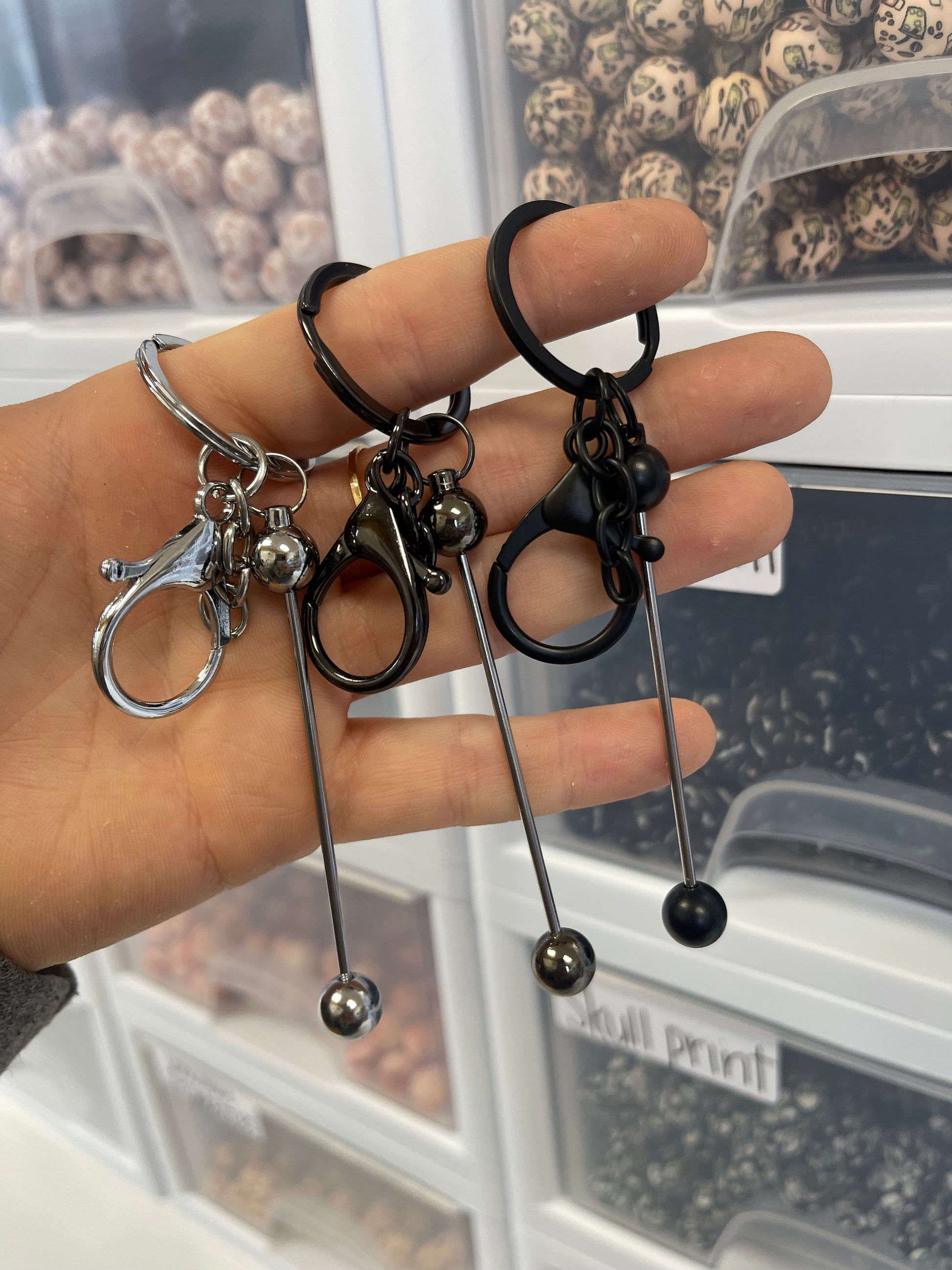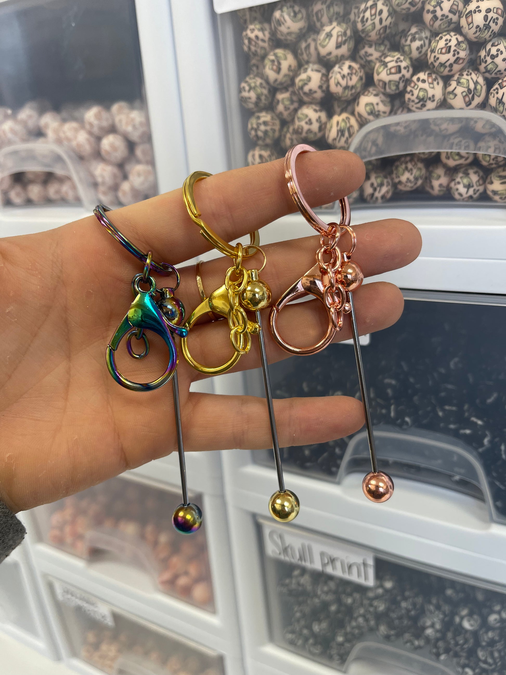 These bars make it super easy to make up an attachment for a key chain. Unscrew the bottom ball, add beads and screw back together. Add your favorite printed beads and focal for the perfect look.