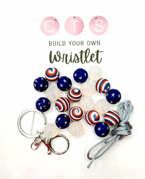 This kit includes all items shown in photo, 7 Old Glory Stripes, 7 Navy Star, 7 Clear Sparkle Jelly, 1 Key Ring & approximately 3 feet of cord.