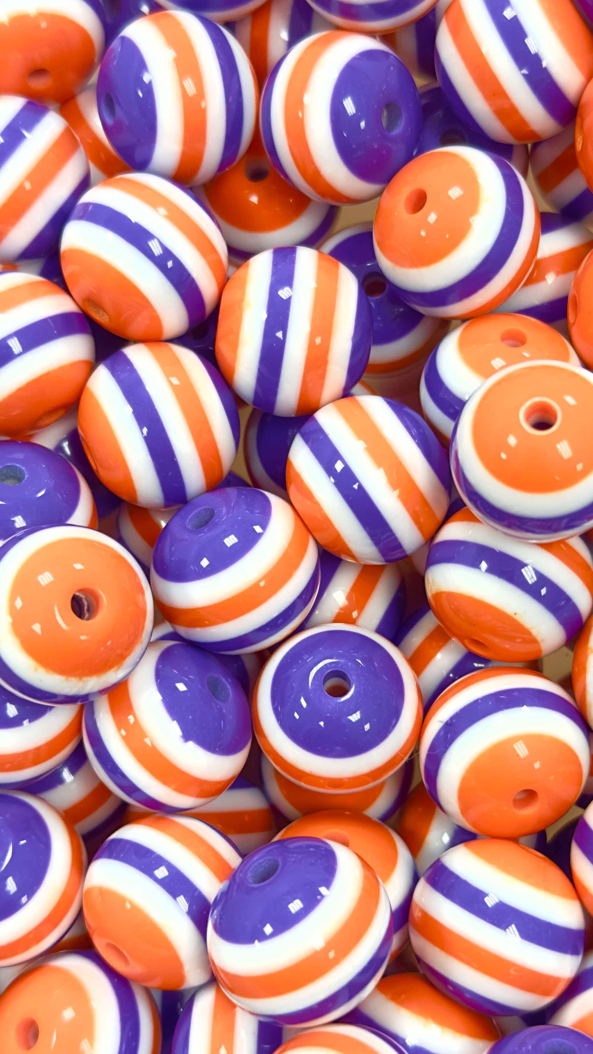 Orange/Purple/White Stripes 20mm Acrylic Bead