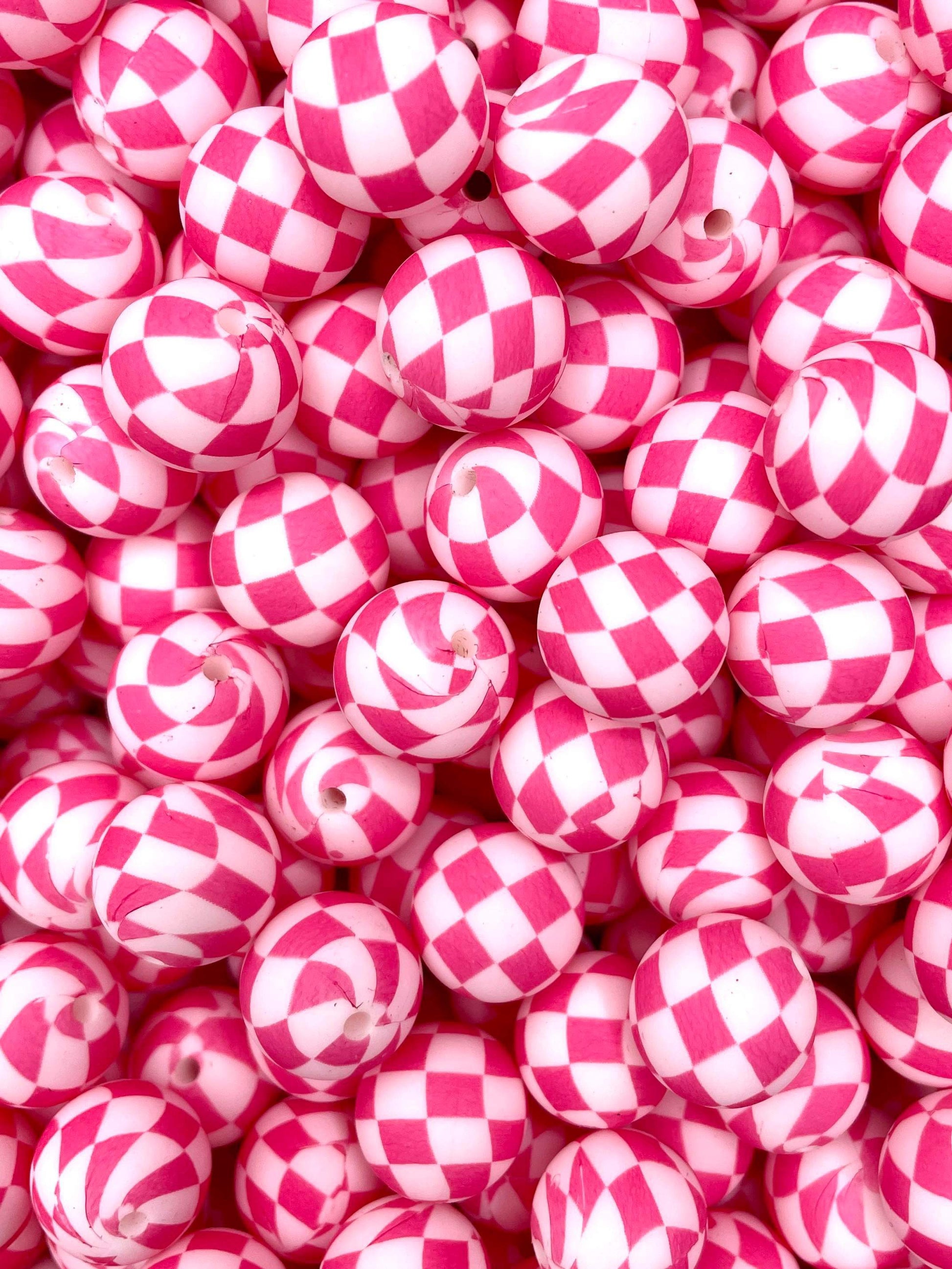 Pink Checkered (Boss Babe) Printed 15mm Bead