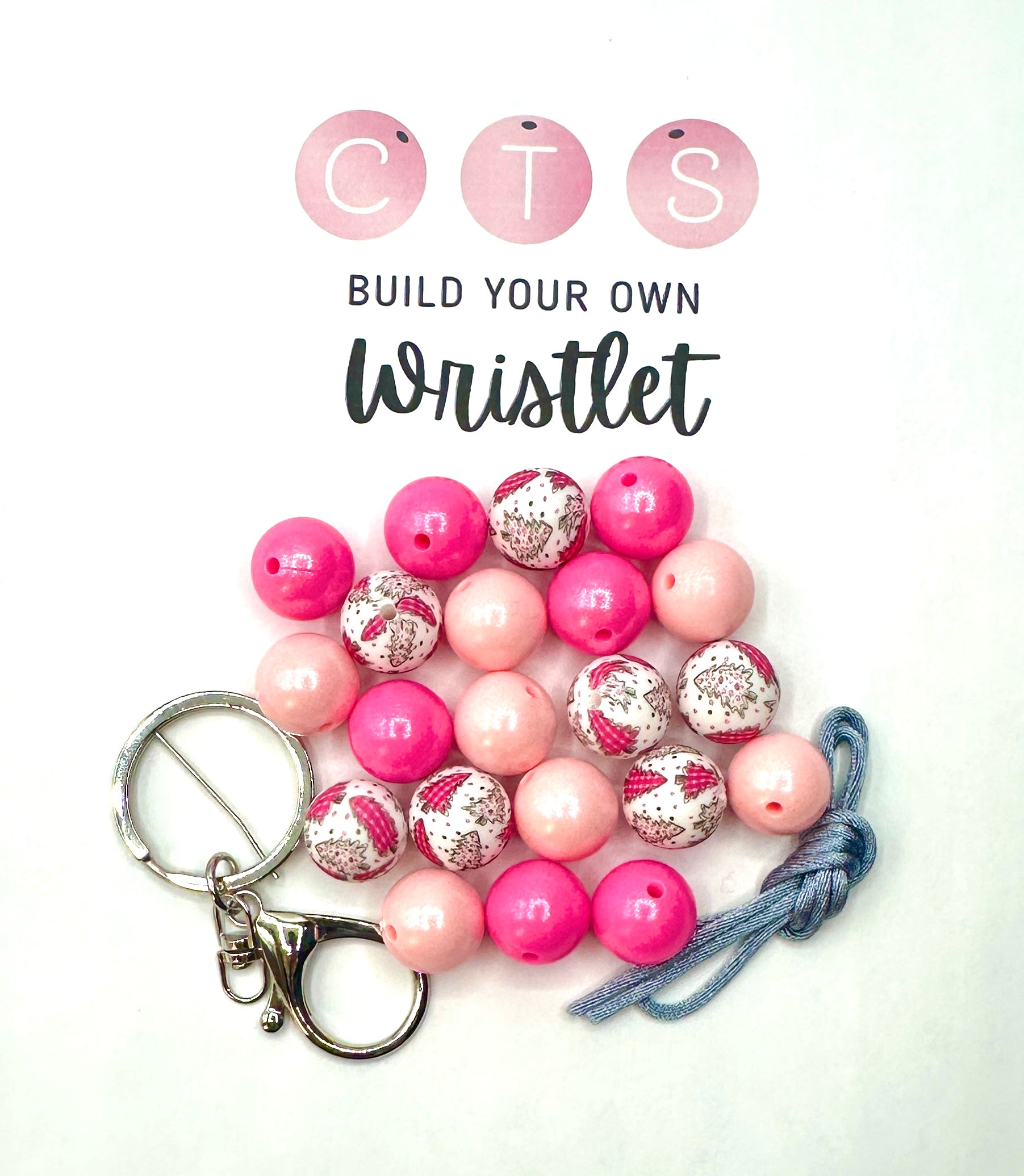 This kit includes all items shown in photo, 7 Pink Plaid Pines, 7 Rose Quartz Super Shimmer, 7 Macaroon Super Shimmer 1 Key Ring, & approximately 3 feet of cord.