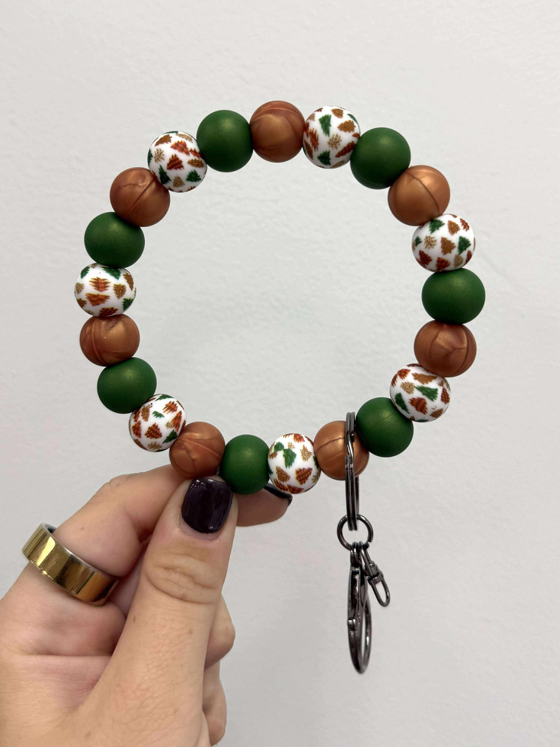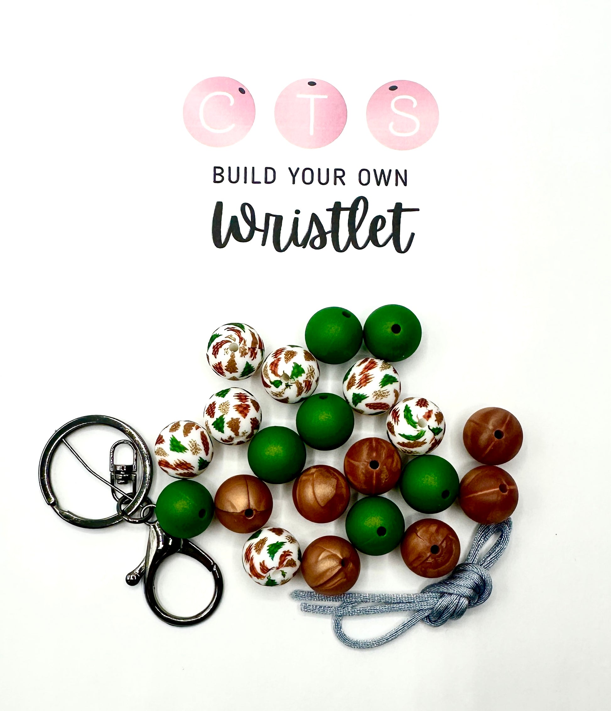 This kit includes all items shown in photo, 7 Plaid Trees, 7 Metallic Green, 7 Copper Pearl, 1 Key Ring, & approximately 3 feet of cord.