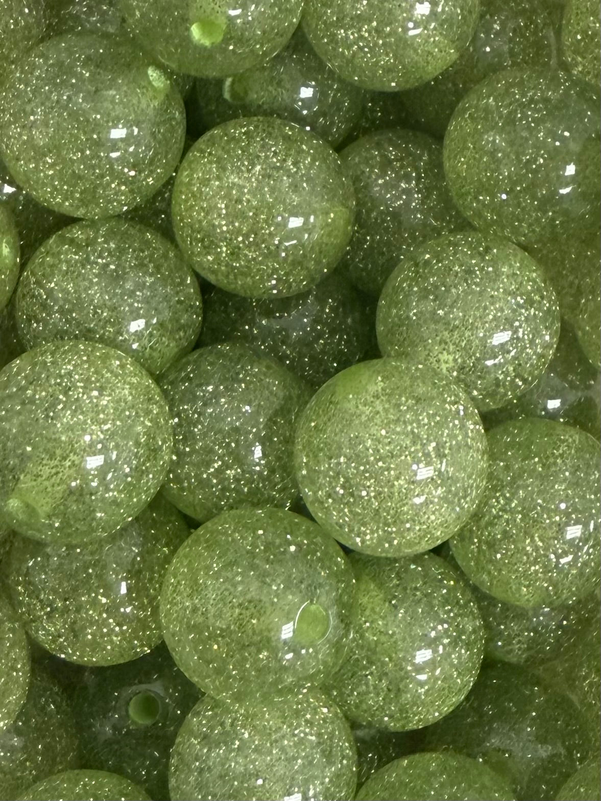 Sage Clear Glitter 20mm Acrylic Bead
