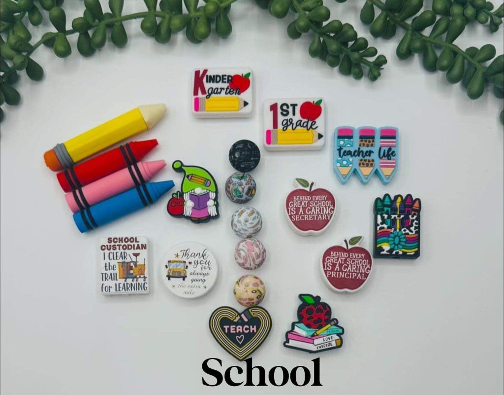 25 total Printed Beads: Love to Learn, Chalkboard, Fill Your Backpack, Rule the School, Stay Sharp