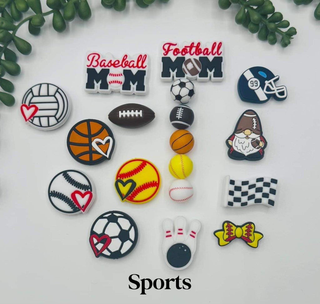 Focals: Football Mom, Baseball Mom, Baseball Glove, Football Shape, Football Helmet, Bowling, Love My Sport-Baseball, Love My Sport-Basketball, Love My Sport-Football, Love My Sport-Soccer, Love My Sport-Volleyball, Love My Sport-Softball, Checkered Flag, Sports Bow-Softball, Football Gnome