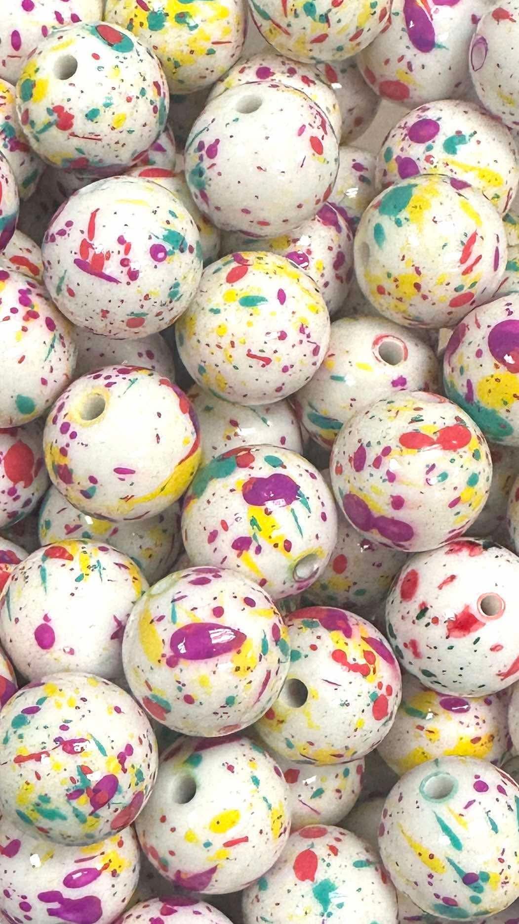 Turquoise/Purple/Yellow Splatter 20mm Acrylic Bead
