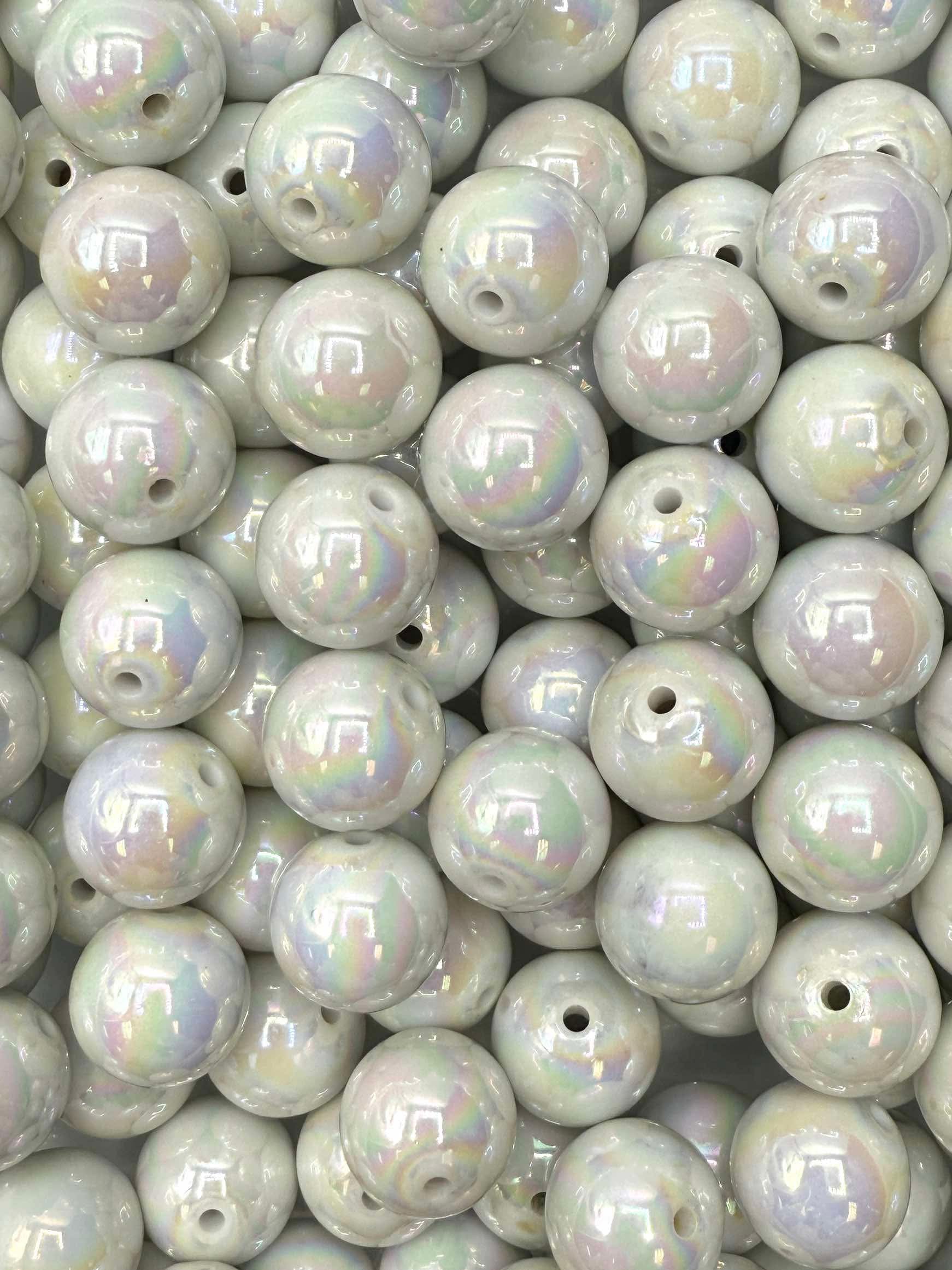 White Iridescent 20mm Acrylic Bead